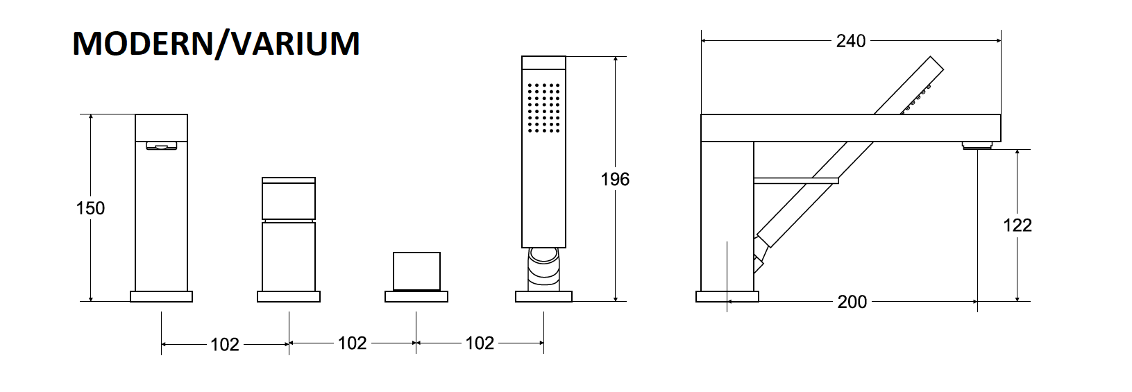 4 - otvorová vanová baterie série MODERN/VARIUM je pro zákazníky, kteří chtějí pohodlné, elegantní a přitom minimalistické řešení s moderním designem. Vanová baterie má minimum detailů, což produkt výrazně odlehčuje.
