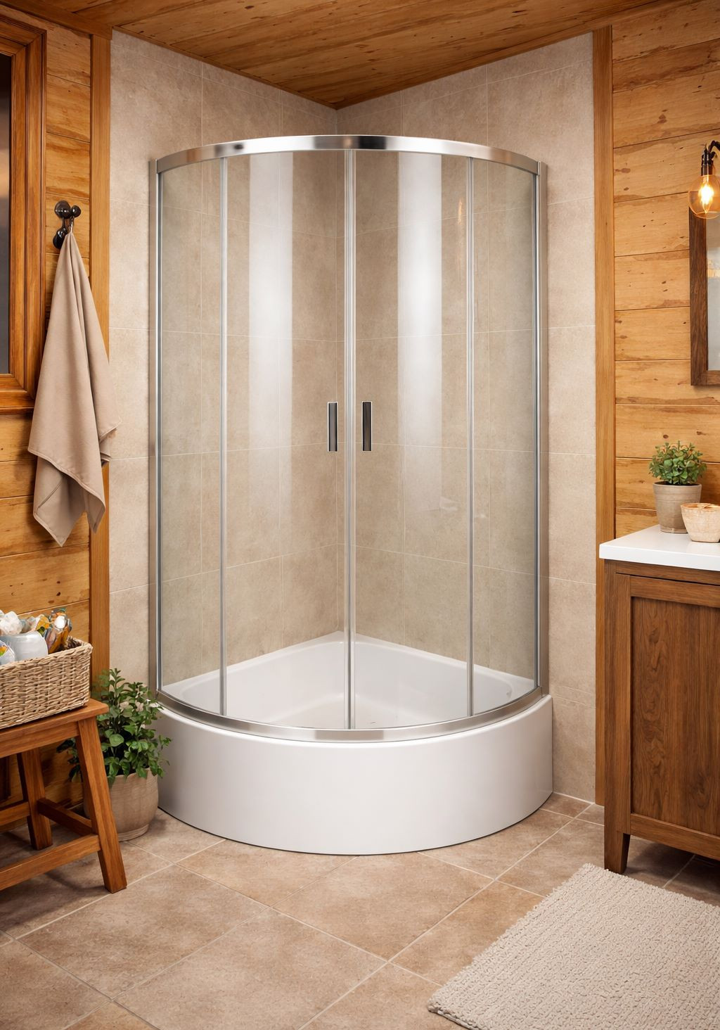 Čtvrtkruhový sprchový kout Toledo plus s hlubokou akrylátovou vaničkou vyniká vysoce kvalitním zpracováním a spolehlivou funkčností všech součástí a materiálů. Komfortní odklápěcí pojezdy výrazně usnadňují údržbu sprchového koutu.