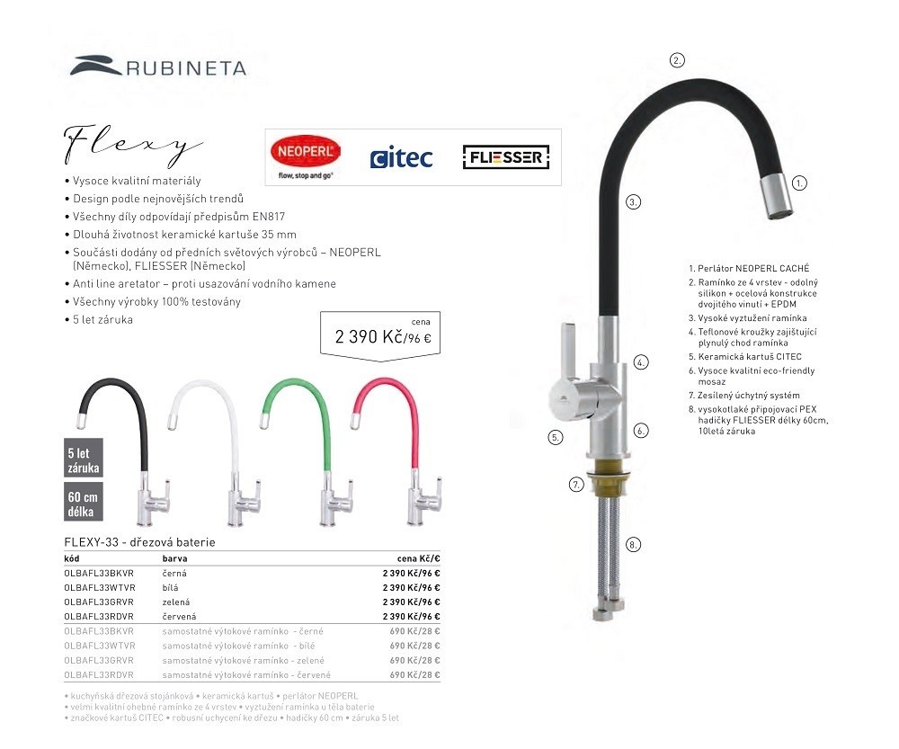 Přednosti dřezové stojánkové vodovodní baterie Olsen Spa FLEXY-33:
