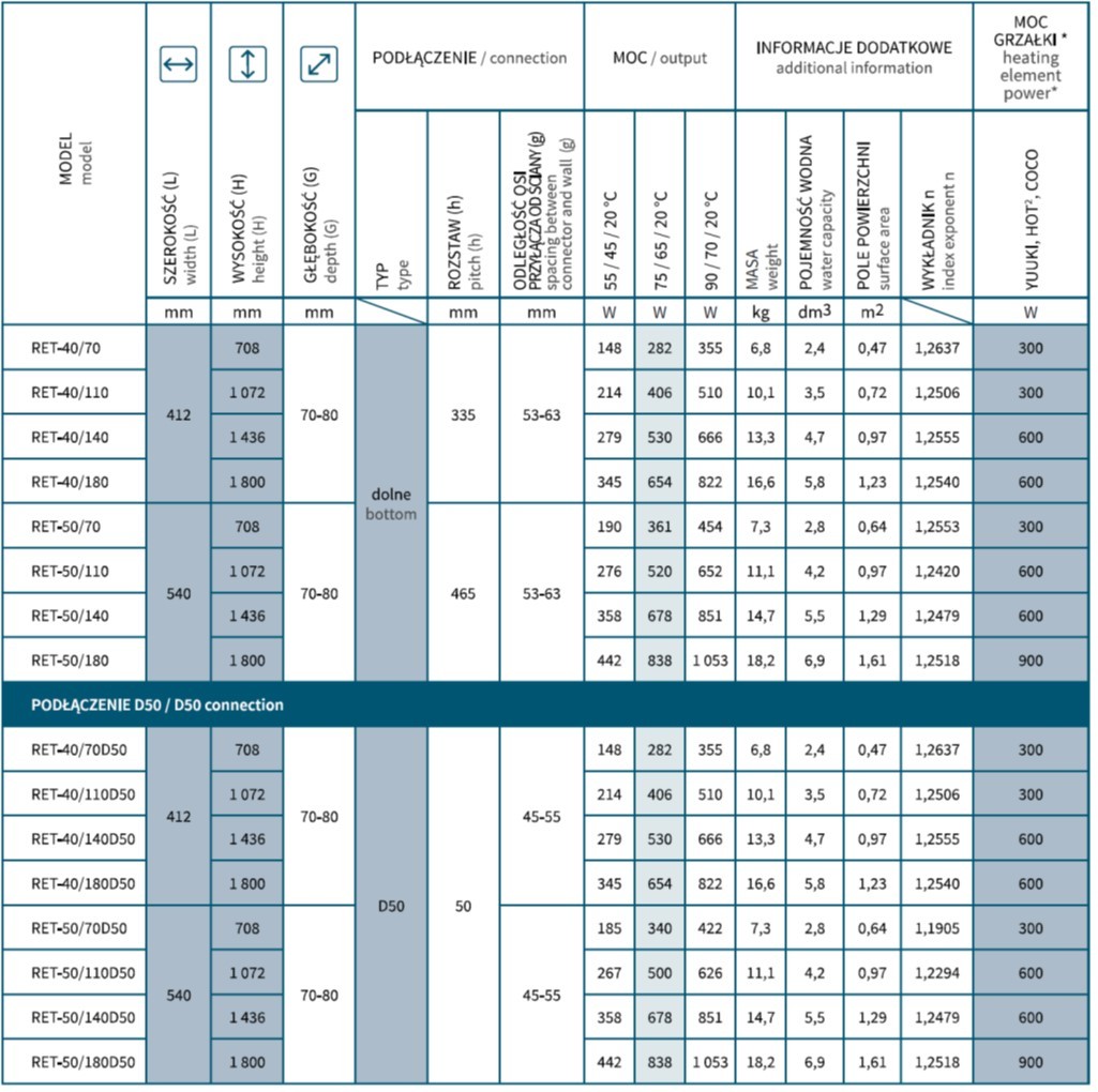 Radiátory jsou dodávány BEZ topné tyče, za rozměrem je pouze uveden vhodný výkon tyče pro patřičný rozměr.
