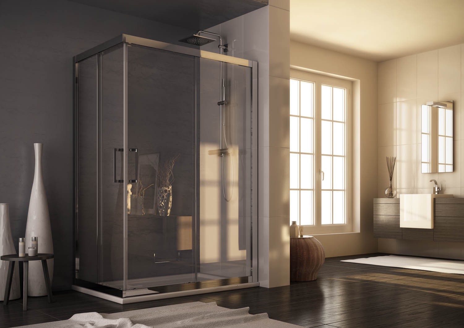 • Možnost vytvořit obdélníkový nebo čtvercový sprchový kout