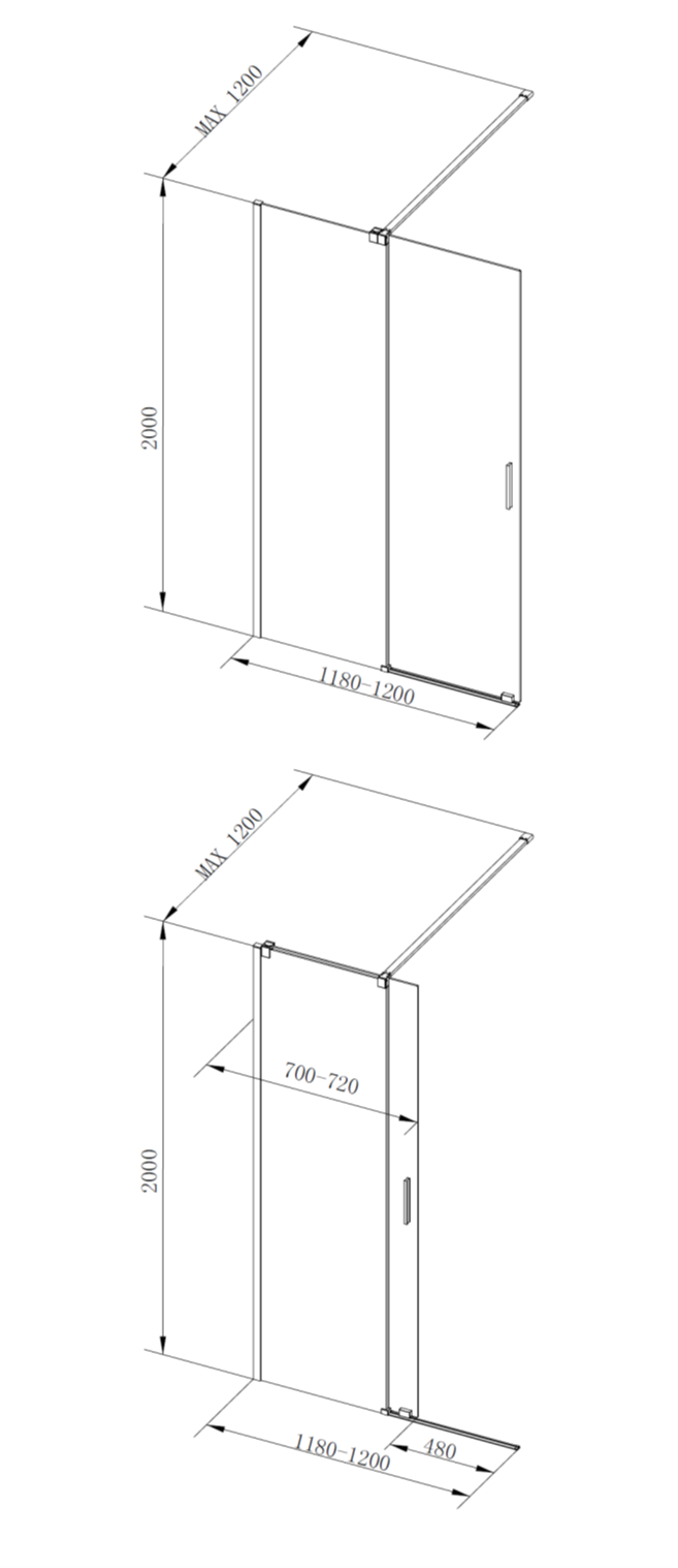 - 120 × 200 (výška) cm, montážní rozměr 118 - 120 cm